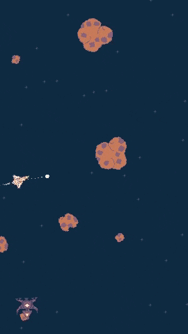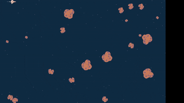 After I showed the game for the first time, it was almost immediately compared to the old legend Asteriods (1979). After that, I changed my immediate plans a little. I decided to spend more time on the asteroids. For starters, let them be different sizes and rotate a little.